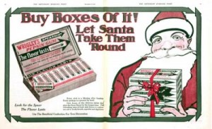 Now that Thanksgiving is over, it’s onto the Christmas season. And since it starts on Black Friday, I begin my holiday blog roll with my 4th annual Christmas ad post. Of course, I featured one depicting Santa Claus advertising Coca Cola. Yes, I know he’s not setting a good example since he’s promoting a soft drink that’s responsible for obesity and diabetes. But his association with Coca Cola is so well known that it’s iconic. Though as we’ve all seen, Coca Cola hasn’t been the only company to use Santa Claus to sell their product. In fact, far from it. Nor has Coca Cola been the first company to do so. Nevertheless, you’ll find plenty of ads plastered all over the place for Black Friday sales despite that you’re better off shopping for Christmas gifts in December. So if you have anything better to do, perhaps you might want to look into another installment of these vintage ads. Of course, you might think they’re filled with rosy imagery meant to tingle at your nostalgia. But I usually go for the ones that haven’t aged so well and contain disturbing implications. Whether it’s accidental innuendos, creepy kids, bad health advice, and what not. So for your reading pleasure, I give you another treasure trove of crazy vintage Christmas ads.
