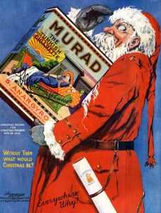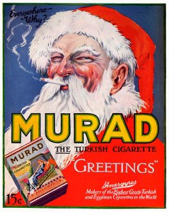 67. Santa always enjoys a good smoke with Murad cigarettes.