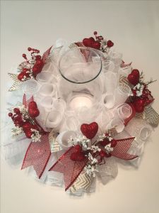43. A decomesh V-Day candle holder is perfect for any V-Day table.