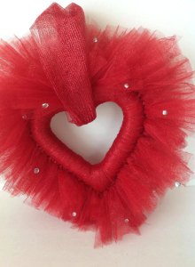 79. A red tulle heart wreath will certainly shimmer.
