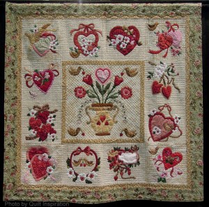 Contains 3 quilting squares with hearts and flowers. Great for any V-Day home.