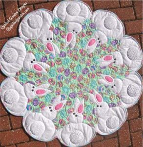 It’s a green doily with white bunny and fancy eggs. Love the flowers.