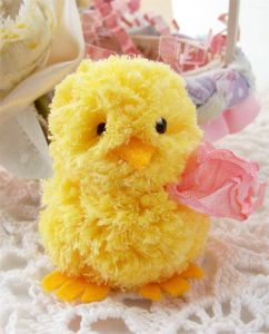 This fuzzy chickie is made out of pom poms. And yes, it’s so cute.
