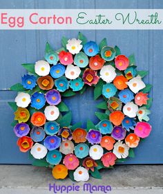 This yarn wreath even has fringes on the edges. Great to hang on your front door for the Easter season.