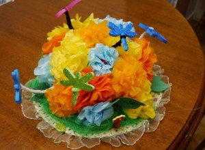 It’s a straw hat made with flowers and Easter eggs. Not sure if you could wear it though.