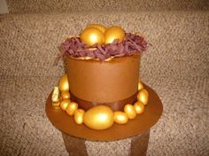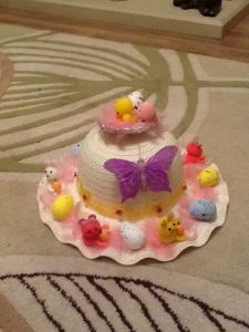 Well, this one has a plush chick on a straw hat. It’s surrounded by eggs.