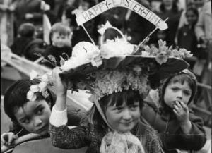 Yes, they had wacky Easter bonnets back in the day, too. Though I’m not sure if a black and white picture does it any justice.