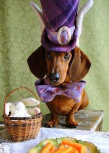 This purple hat even has bunny ears. Still, not sure what the dog thinks here.