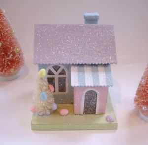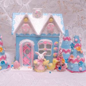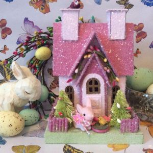 Though Christmas and Halloween may be far more popular holidays, Easter has its large share of fans. So it’s no surprise that we have plenty of Easter village houses. After all, if you’re a company that sells these houses and accessories, why stop at Christmas when you can sell similarly themed items all year long? Sure these village sets can be very expensive. But they’re popular enough for me to do multiple posts on them. With Easter, you find plenty of houses in pastel colors as well as bunnies, chicks, flowers, butterflies, and sheep. And yes, there’s plenty of cuteness to go around. Though many of these houses may be made out of porcelain, some of these Easter village enthusiasts opt for the putz variety. Sometimes, they make their own putz house which you might see on Etsy. Anyway, for your reading pleasure, I give you another treasury of charming Easter houses and villages. Enjoy.