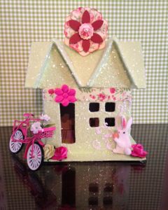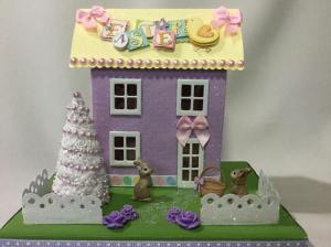 This one has white shutters and green and pink Easter eggs. Like the bunny.