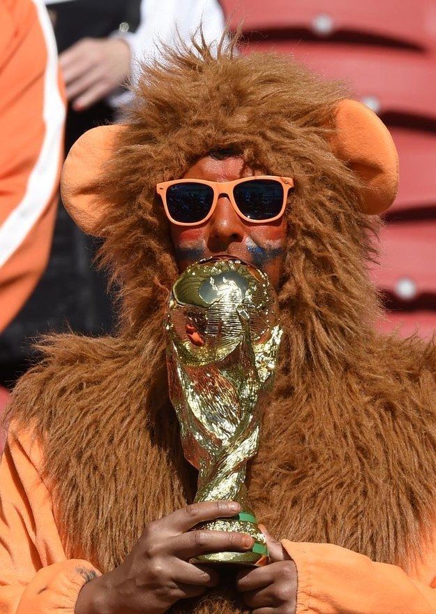 73bac74b447a2828df9ebfdcc1a321cf Published June 15, 2018 at 625 × 879 in Goal Worthy Soccer Fans from the FIFA World Cup ← Previous Next → I’m sure he’s in an orange bear costume with the World Cup trophy. Not sure about the significance of that.