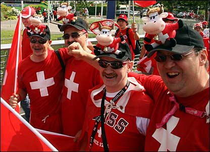 _41784256_swissfans416 Published June 15, 2018 at 416 × 300 in Goal Worthy Soccer Fans from the FIFA World Cup ← Previous Next → They have plush cows on their hats. And they’re even wearing shirts for Team Switzerland. Odd since I thought they’re supposed to remain neutral.