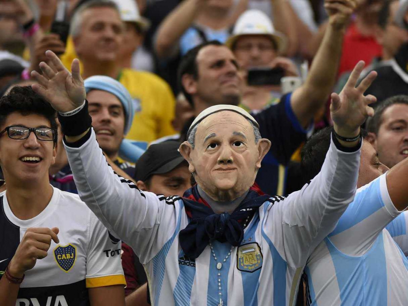 argentina-pope Published June 15, 2018 at 806 × 605 in Goal Worthy Soccer Fans from the FIFA World Cup ← Previous Next → Okay, Pope Francis wasn’t there. It’s just a guy in a mask of him. But I’m sure he’d like the tribute since he’s an avid soccer fan.