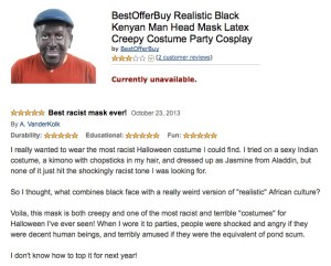 Seems more like a lawn jockey mask. But if your friends like to dress in white robes, cut holes in sheets with conical tops, and burn a cross in the yard, go for it.