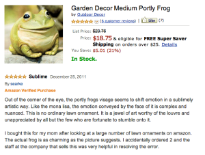 In the age of the internet, Amazon has emerged as the default retail outlet offering everything from books, gadgets, toys, and what have you. It also helps that before you make your purchase, you can read what other people have to say about a product in its review section. Each review can come with a 1-5 star rating along with an explanation. Most of these reviews can provide rather useful information even if they tend to be boring to read. Though they may not always be reliable since everyone has an individual bias. But there are some merchandise on Amazon that have rather entertaining reviews you can read just for kicks. Of course, some of them aren’t meant to be taken seriously, especially if they’re written by a person who didn’t purchase the product at all, perhaps to point out a fault and mock it. Yet, there are always some who might not simply understand the product’s purpose at all. So for your reading pleasure, I give you a grand treasure trove of Amazon reviews that will be well worth your time. I insist. Some of these might not be safe for work, by the way.
