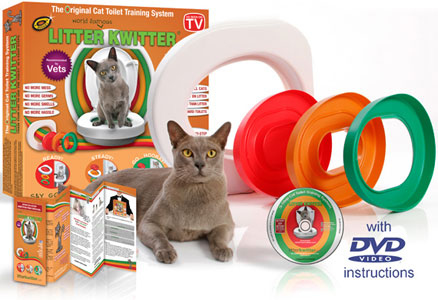 Tired of cleaning litter boxes? Wanting to potty train your cat? Well, say hello to Litter Kwitter Cat Toilet Training System. As with getting your cat to use it, well, good luck with that.