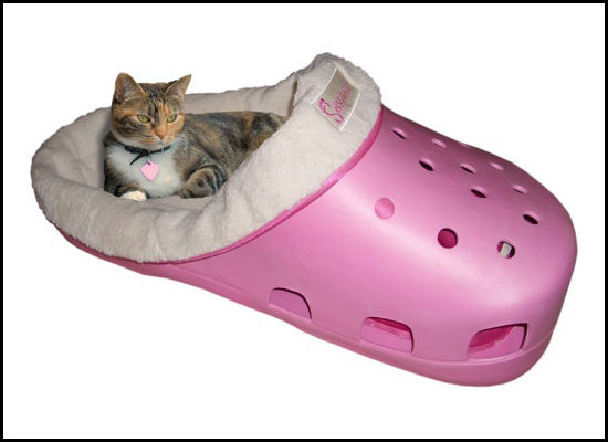 Sure cats need beds. But I don’t know if a supersized croc bed really cuts it. Seriously, it just looks stupid like those shoes.