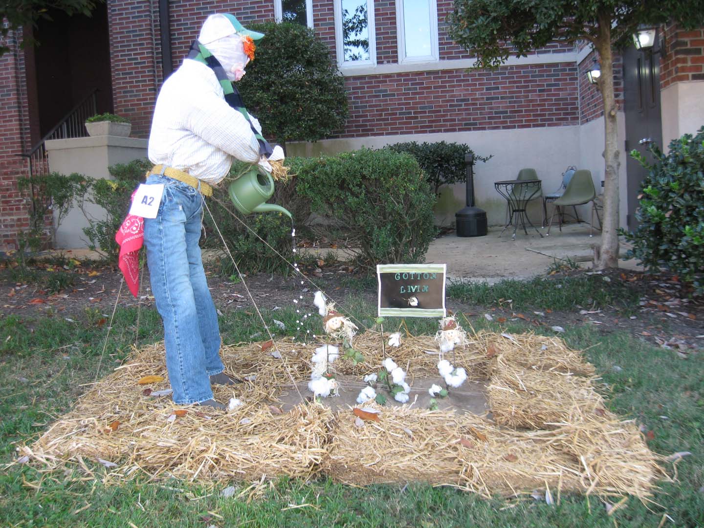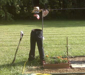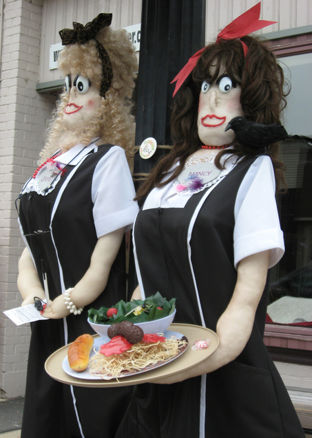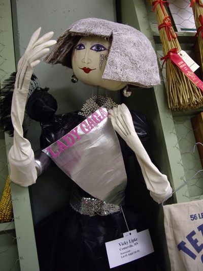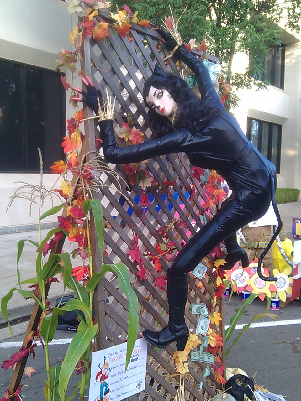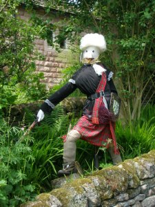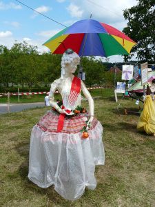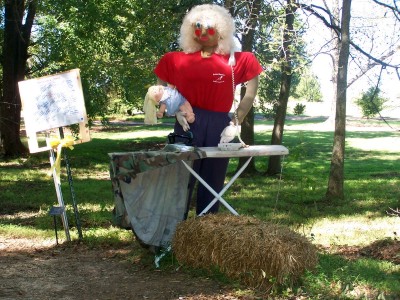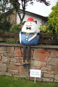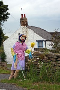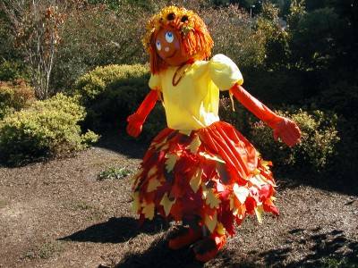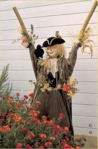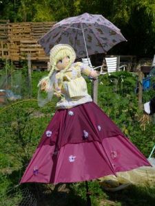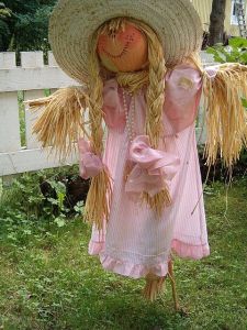 This scarecrow’s dressed as a maid. Though I don’t think the tights go with that outfit.