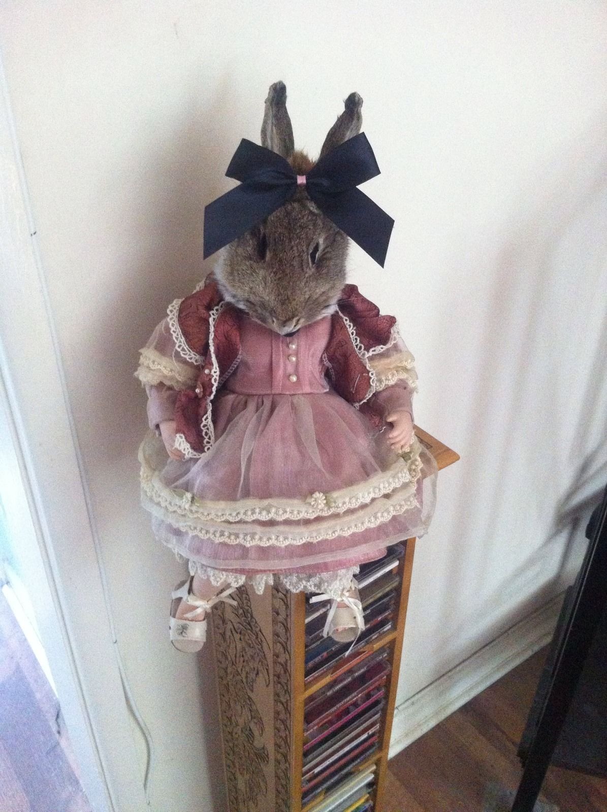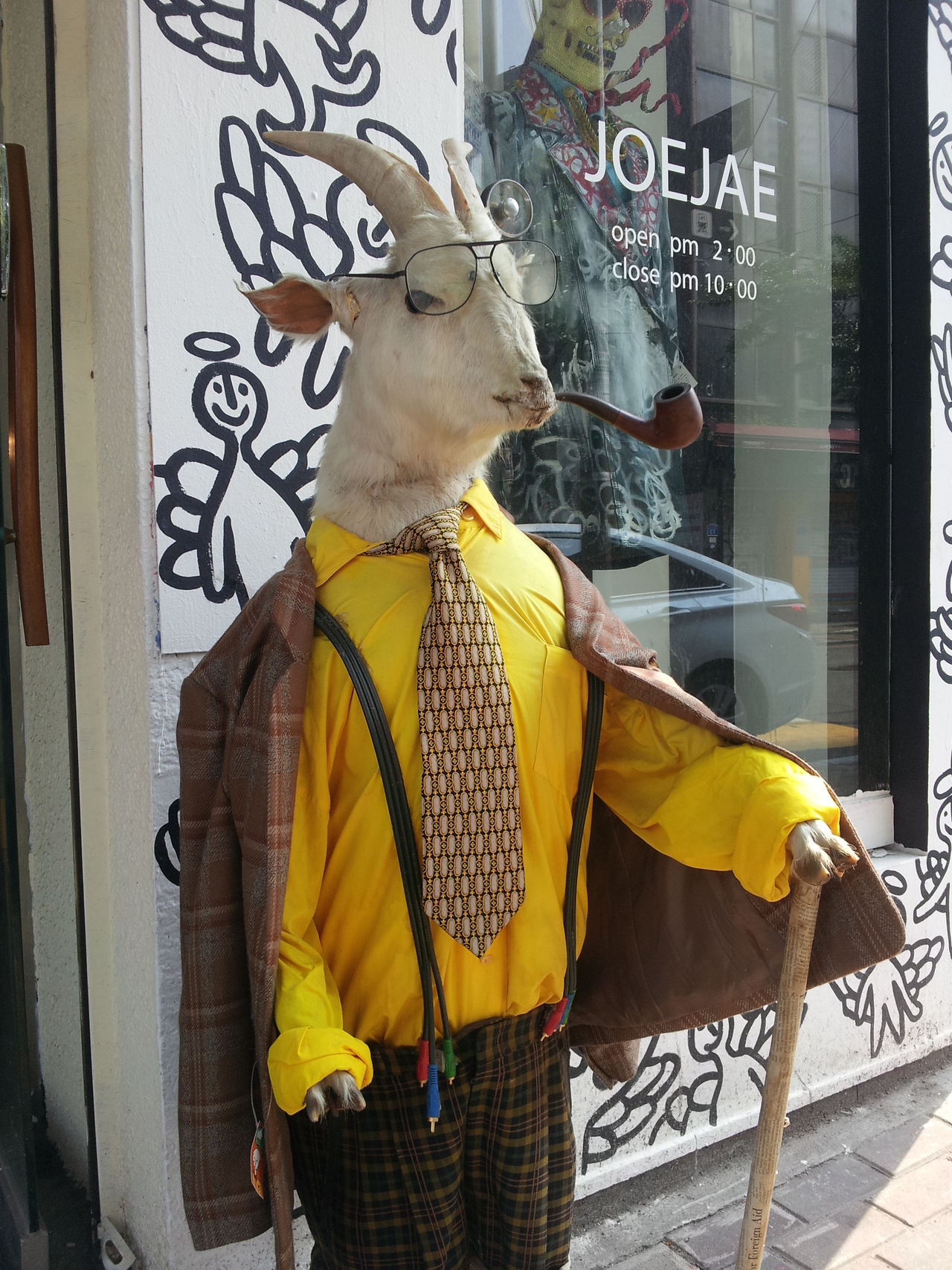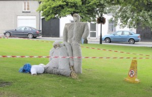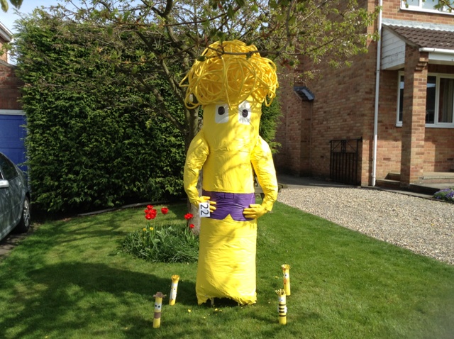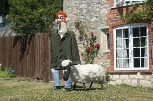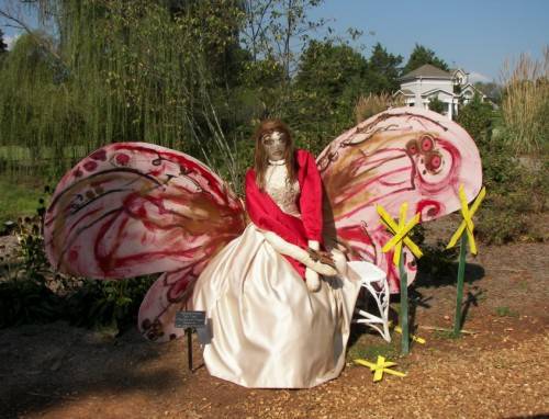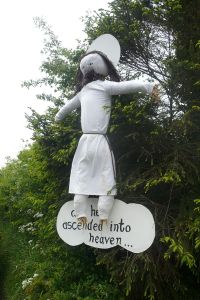 This scarecrow’s dressed as a maid. Though I don’t think the tights go with that outfit.