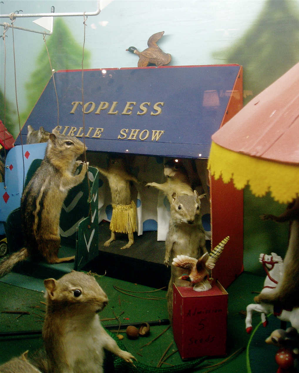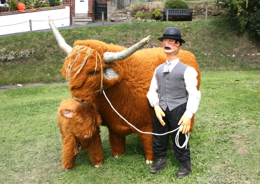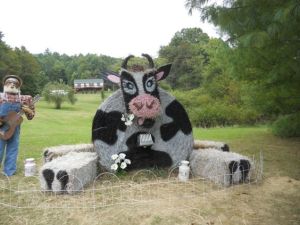 Yes, it’s another rendition of American Gothic. Yet, these two don’t have pumpkin heads. There’s also a cow.