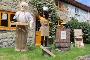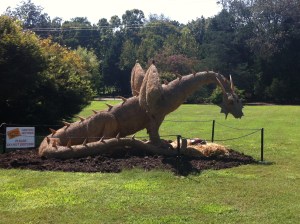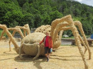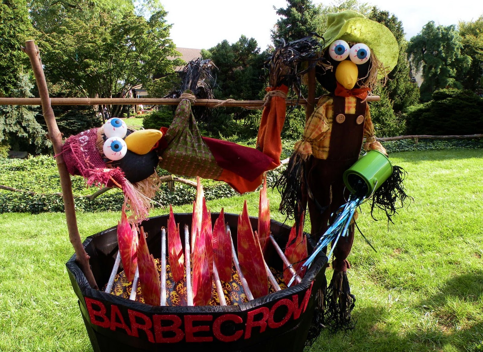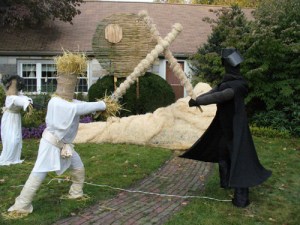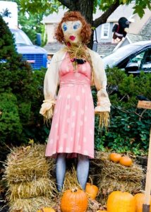 Wizard of Oz seems to be a common motif in scarecrow festivals. Maybe it’s the Scarecrow. This display includes the Wicked Witch of the West though.
