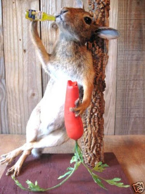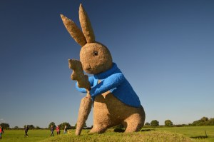 He’s even posing with carrots. Guess they’re from Mr. MacGregor’s garden.