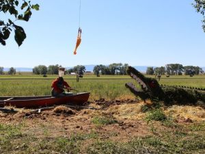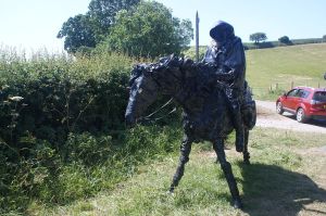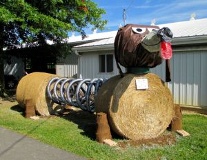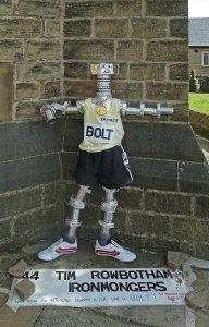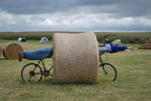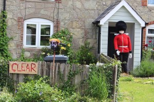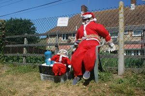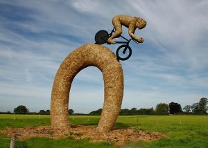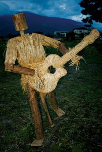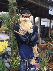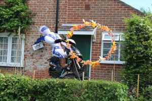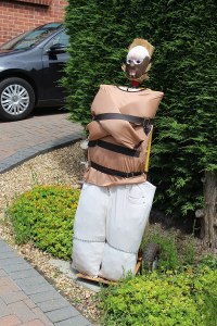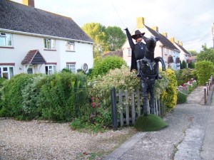 This scarecrow rides on a bike. Though I’m not sure if he’s Tour de France material.