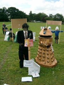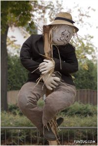Sorry that I haven’t done any new posts for three weeks. Since I’ve been working on a project that took me about four weeks to complete. Anyway, given that fall’s coming up, you’re bound to see scarecrows everywhere. After all, fall is usually a time of harvest. Despite that critters can get into the crops all year long. Still, scarecrows were originally erected to scare them off at a time when most pesticides didn’t exist. Nonetheless, they’re usually made out of straw, wooden stakes, and old clothes. Yet, many communities can also hold scarecrow contests showing all the unique straw figures out there. So for your reading pleasure, I give you another assortment of unique scarecrows. Enjoy.