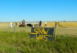 Well, it’s covered in burlap. But the straw’s inside. Still, better not throw a bone at it.