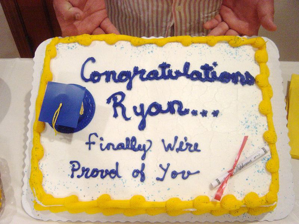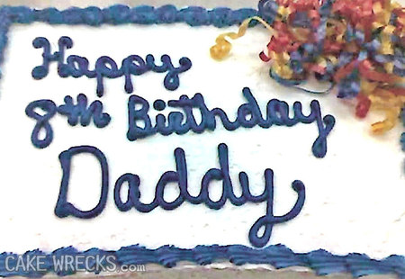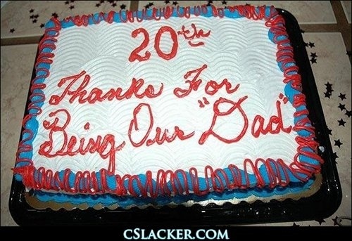 This may either be a wedding anniversary cake or a birthday cake with a typo. Either way, the 20th doesn’t glowingly reflect his parenting skills. Seriously, most 20-year-old dads are either deadbeats or don’t even know they are dads in the first place. Sure there may be some responsible dads that age, but they’re a rarity.