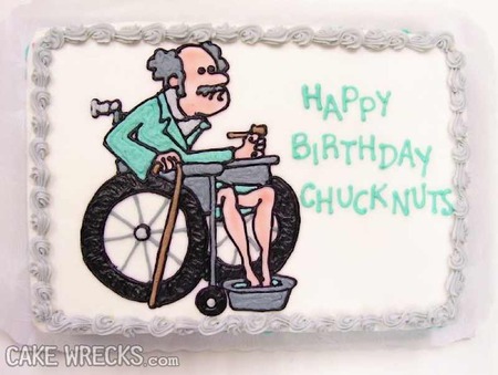 Okay, I'm not sure why they call a wheelchair bound guy "Chucknuts" and I really don't want to know. Then again, this could just be for a party with the guy's friends, not his grandchildren.