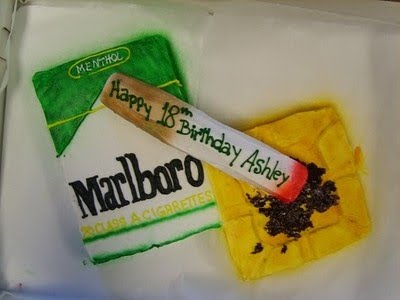 Seriously, just because a someone's able to buy cigarettes after they turn 18, doesn't mean a cigarette themed cake is a good idea. In fact, it's certainly not. I mean tobacco addiction is a worldwide health issue, which kills people every day from respiratory disease, cancer, COPD, emphysema.  and other wonderful chronic and life threatening ailments.