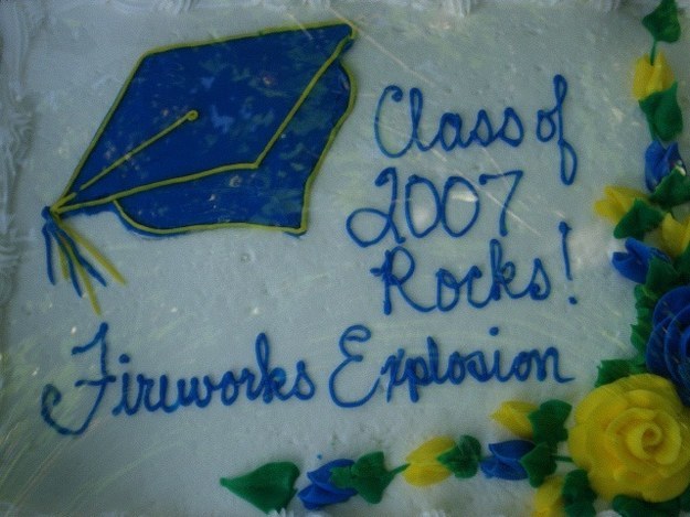 Don’t just write it in multi-colored icing. But did the cake decorator listen? No.
