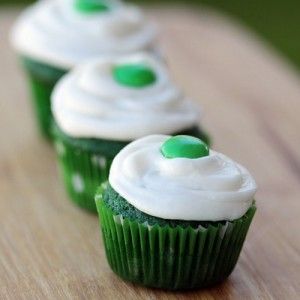 These are green velvet cupcakes with green and white icing on them. Still, wonder what the ham cake looks like with these.