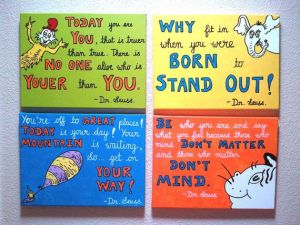 Contains imagery from the Lorax, the Cat in the Hat, One Fish, Two Fish, Red Fish, Blue Fish, and Oh, the Places You’ll Go. So cute.