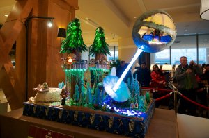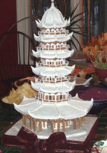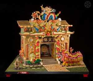 They’re joined by a bridge covered in the same candy and icing. An Asian twist to Christmas so to speak.