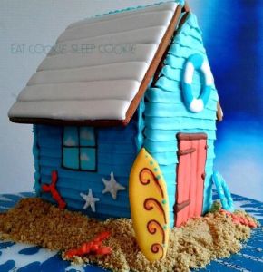 This one has all kinds of cookies on the roof. Not to mention, ice cream cone treats as fence posts.