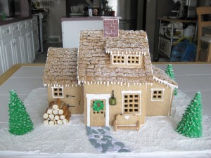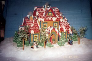 Everything here’s made out of cookie. Even the trees and roof tiles. Also has icicles dripping from the roof.