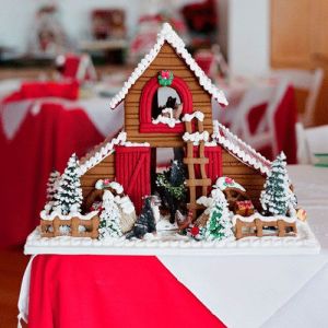 This one has a cookie stone path and lovely decorations. The Christmas trees are made from ice cream cones.