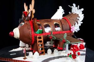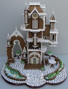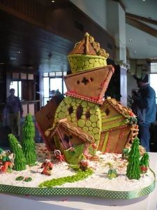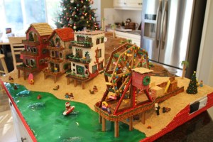 A key Christmas feature is the gingerbread house. In Hansel and Gretel, this is the fairy tale equivalent of a windowless van with free candy. Anyway, on these you’ll find stuff like gum drops you’d never eat, candy canes, icing, and more. For many families, it’s a Christmas tradition that stores often sell gingerbread house kids. Now I don’t usually show them because they’re quite standard and lack much originality. But for some repressed artists, these kits are just child’s play. When you Google gingerbread houses, you come to some elaborate displays at some of these contests. Obviously a sign that some people have too much time on their hands. Anyway, for your reading pleasure, I give you another assortment of sweet gingerbread houses.