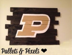 Has the Boilermaker Special painted upon the wooden planks. Perfect for any Indiana home.