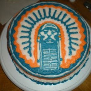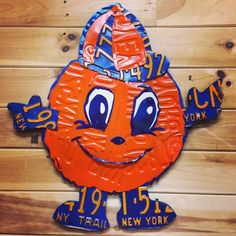 Painted orange with a blue bow on top. Perfect for any Florida fan.