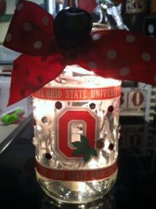 Just has Christmas lights in a blue wine bottle. Just make sure to smack the Michigan logo on it.