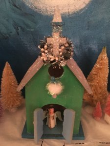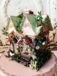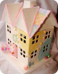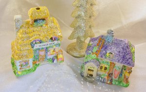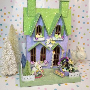 This one includes a doorway, windows, and chimney. And it even lights up as if a witch lives there.