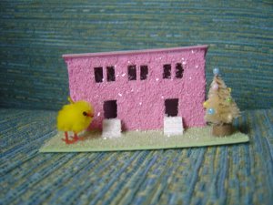 You can see a figure on a bench. Haunted house must be made out of paper though.