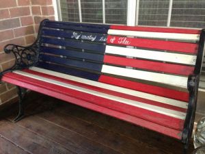 He’s on a bench with a squirrel and a scarecrow. As the leaves deck the straw.