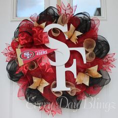 66. A fancy candy cane wreath will suit your holiday door.