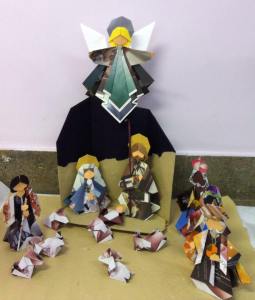 This one depicts the figures in felt robes. While the manger is a basket.