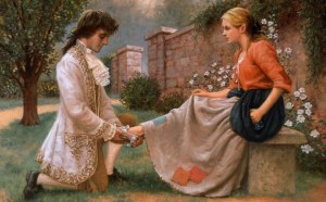 During a siesta at the governor’s mansion, the princess wanders into the garden and finds the handsome soldier. Thinking he’s hot, she reads a letter from her dad ordering his execution. She changes the message and reworks the message so that she can snag her man. Still, this image is so whitewashed.