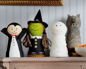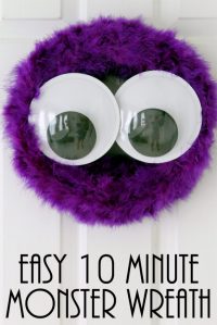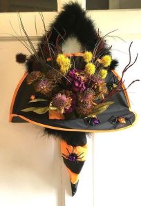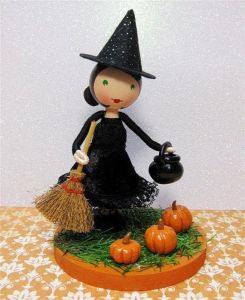The jack-o’-lantern on her has a pipe cleaner body. While the top window has cobwebs.